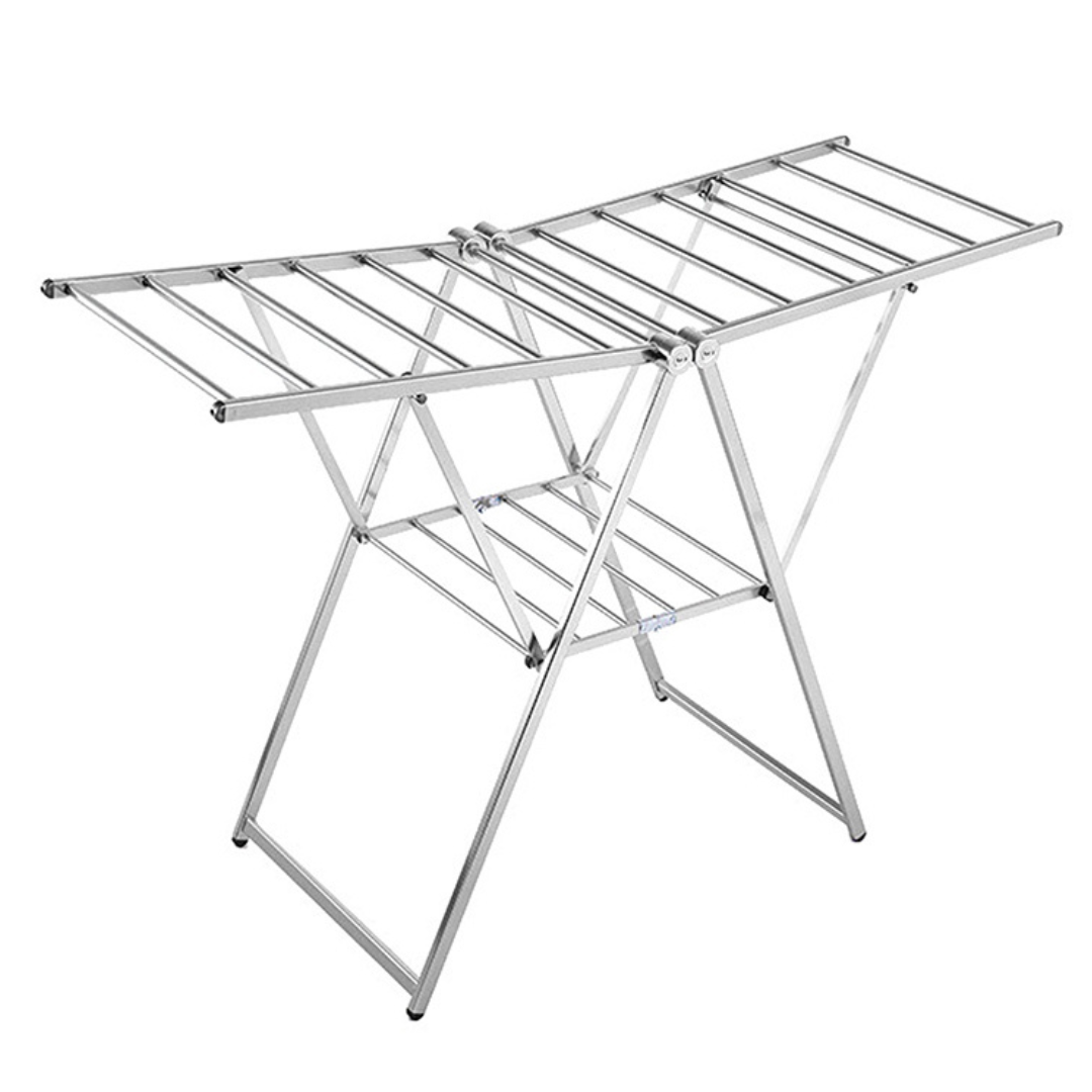 Ample Drying Capacity: With its two-layer design, this rack provides ample drying space for your clothes, linens, and more. Hang your garments on the upper layer and lay delicate items flat on the lower layer for optimal airflow and efficient drying.