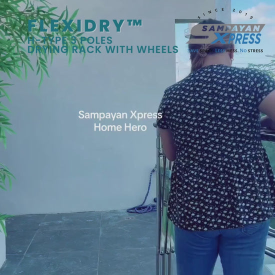 Sampayan Xpress® FlexiDry™ H-Type 3 Poles Stainless Steel Movable Drying Rack with Wheels